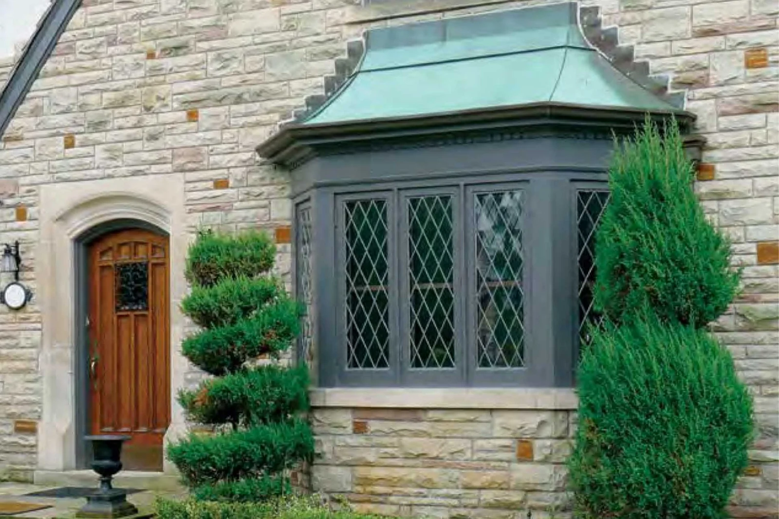 Typically, bay windows consist of one large window between two casement or double-hung windows that come together to form one large viewing space. It is a decorative style of window that projects outward from the wall, allowing for breathtaking views.